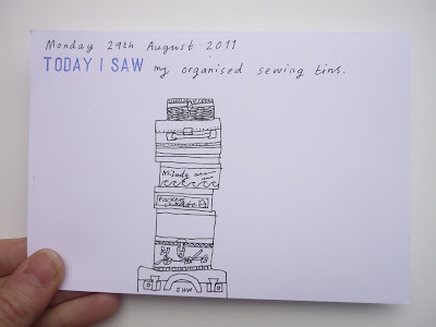 I love that pile of sewing tins! So fun to see a drawing of your creative space.